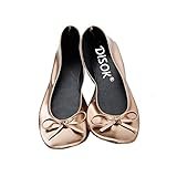 - Precio por par. Fabricadas en PU, con suave suela de caucho. Se enrollan sobre sí mismas y se guardan en una bolsita de tela a juego con cierre mediante cordón, el cual podrás utilizar para colgar de tu muñeca para transportar más fácilmente. Color: BRONCE. Talla: L (40-41)