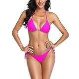 • Clásico tanga string bikini con la parte superior de bikini triangular ajustable, no hay más pastillas. Halter corbata.