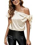 - Características: un hombro, manga corta, lazo de nudo, parte superior de satén para trabajo de oficina, tela suave con algo de elasticidad