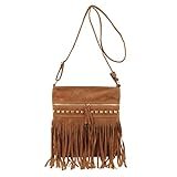 - Estilo boho auténtico: tejido de ante sintético (parte delantera) y cuero PU (parte trasera) con delicados detalles de flecos y borlas para un look desenfadado y libre