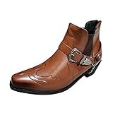 ENWIND Botas de Tobillo Occidentales para Hombre con Hebilla, Estilo Cowboy, Cortas, Retro, de Cuero, Puntera Cuadrada, Botines de Motociclista,Marrón,44 EU