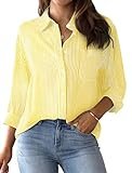 - 80% algodón y 20% poliéster de alta calidad. La camisa a rayas con botones para mujer es ligera, duradera y cómoda de llevar. Parte delantera abotonada para crear un escote en V