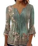 • 【Características】Ajuste casual y holgado, camiseta clásica, blusas ligeras de manga larga, estampado bohemio, hay un ribete de botón en el escote. Usar este top de manga Larga suave y elástico te mantendrá cómodo.