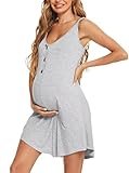Irdcomps Camisón Lactancia para Mujeres Camisones Embarazada Verano Ropa para Dormir para premamá Maternidad Hospital(Gris,M)