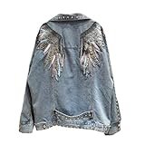 Chaqueta Vaquera Mujer Corta, Cazadora De Denim Abalorios De Manga Larga con Estrellas Bordadas con Estrellas Oversize Cazadora Mujer Entretiempo Chaqueta Mujer Chaqueta De Estudiante Y2k