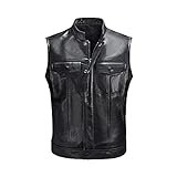 Leatherick Chaleco de cuero real para hombre, estilo motorista Moda casual