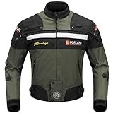 BORLENI Chaqueta de moto a prueba de viento motocicleta armadura de equipo de protección otoño invierno verano para hombre de toda estaciòn XXL Verde Militar