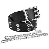 TUONYIS Cinturón Doble Ojal con Tachuelas Sintéticas, Estilo Gótico y Punk para Mujeres/Hombres, Halloween, Jeans - 2 Agujeros