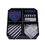 • SET DE REGALO 5-EN-1: La elegante caja de regalo incluye una corbata de hombre de alta calidad, un pañuelo a juego, dos gemelos y un pasador de corbata plateado.