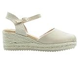 - DISEÑO CLÁSICO: Alpargatas con cuña de esparto natural, confeccionadas con lona y cintas para el tobillo, combinando el estilo tradicional español con elegancia moderna