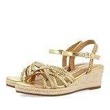 Sandalias de Cuña para Mujer, Estilo Espadrille, Correa de Tobillo, Puntera de Yute (MARRON/DORADO, Sistema tallas calzado EU, Adulto, Números, mediano, 36)