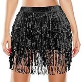 - 【Diseño exquisito】La falda con flecos brillantes está decorada con lentejuelas brillantes que brillan bajo la luz. La falda es elegante y combina bien con una blusa y zapatos de baile. El flequillo es sexy y dinámico al balancearse, y definitivamente recibirás muchos elogios cuando lo uses.