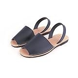 HECHO EN ESPAÑA Menorquina - Ibicencas - Sandalia de Verano de Piel - Mallorquinas (AZUL MARINO, Sistema tallas calzado EU, Adulto, Números, mediano, 46)