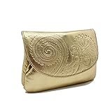 - DISEÑO GLAMUROSO — Cartera en color oro brillante con acabado liso y detalles dorados, ideal para destacar en cualquier ocasión.