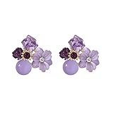 XFSRG Pendientes Mujer Flor Grandes Dorados con Cristales Morados, Aros Oro Largos para Fiesta, Bisutería Elegante para Niñas y Mujeres
