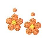SOFPLATE Pendientes Colgantes de Flores de Rafia Pendientes de Botón Naranjas Margaritas Dobles Aretes Envueltos en Paja de Rafia Bohemios para Mujer Joyería de Declaración