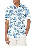 Amazon Essentials Camisa Estampada de Manga Corta y Ajuste Normal Hombre, Azul Estampado Floral, XL