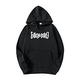 - DISEÑO EXCLUSIVO: Sudadera con capucha negra con estampado gráfico artístico, presenta un diseño minimalista en blanco y rojo que destaca sobre el fondo negro
