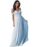 WTWVIAN Mujeres una línea fuera del hombro palabra de longitud de gasa con volantes vestido de novia de dama de honor, azul claro, 48