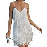 - ATUENDO LLAMATIVO: La minifalda festiva con ribete de plumas proporciona una apariencia inolvidable y única en cualquier evento